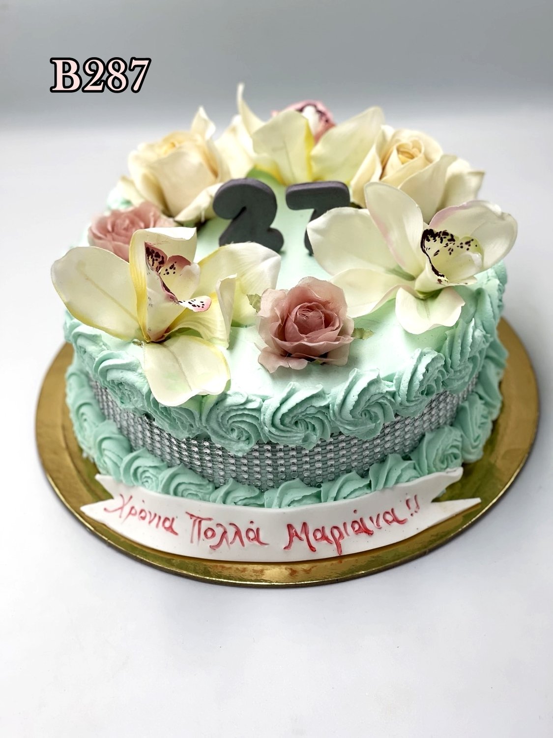Μια αέρινη και ρομαντική τούρτα διακοσμημένη με πανέμορφα λουλούδια, ιδανική για γενέθλια, επετείους και ιδιαίτερες στιγμές. Απολαύστε την τέλεια ισορροπία γεύσης και αισθητικής, φτιαγμένη με μεράκι και αγάπη!