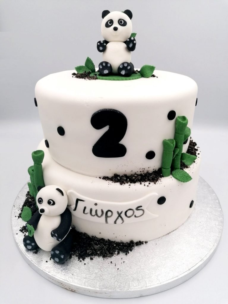 Δύο επίπεδα, δύο αξιολάτρευτα πάντα και άπειρες στιγμές χαράς! Αυτή η λευκή τούρτα με παιχνιδιάρικες λεπτομέρειες από bamboo είναι η απόλυτη επιλογή για μικρούς φίλους που αγαπούν τα ζωάκια. Ένας γλυκός κόσμος γεμάτος περιπέτεια και χαμόγελα.