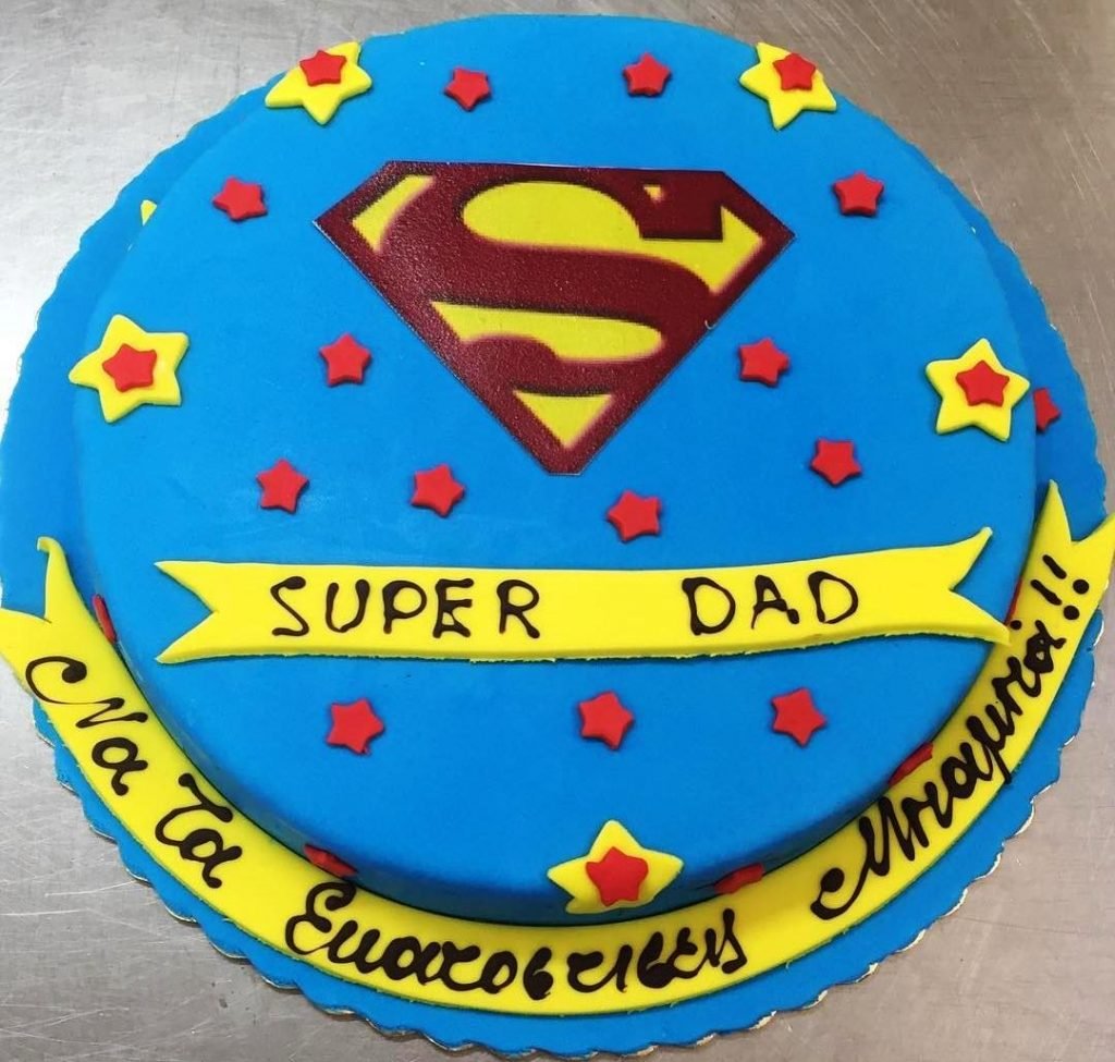 Για τον πιο σούπερ μπαμπά του κόσμου! Αυτή η τούρτα είναι αφιερωμένη σε όλους εκείνους που καθημερινά αποδεικνύουν πως οι πραγματικοί ήρωες δεν φορούν κάπες – αλλά δίνουν αγκαλιές, συμβουλές και απεριόριστη αγάπη.