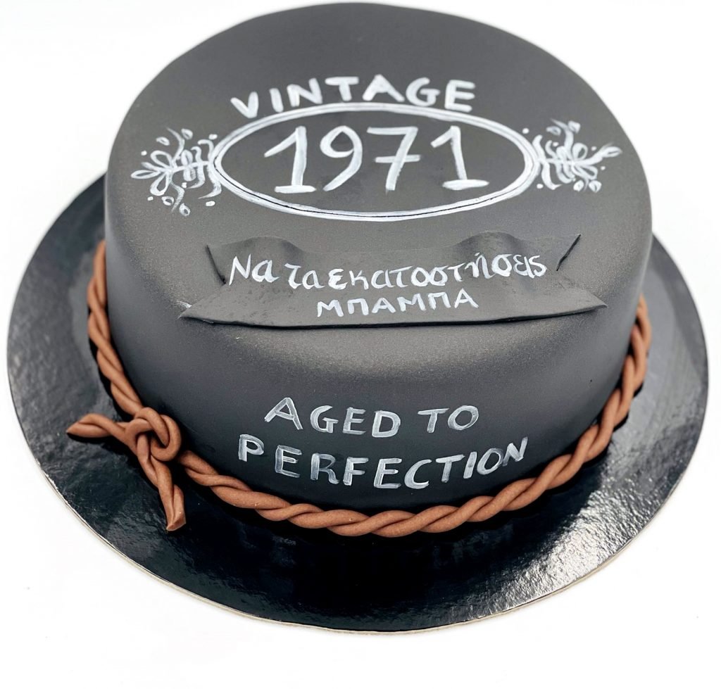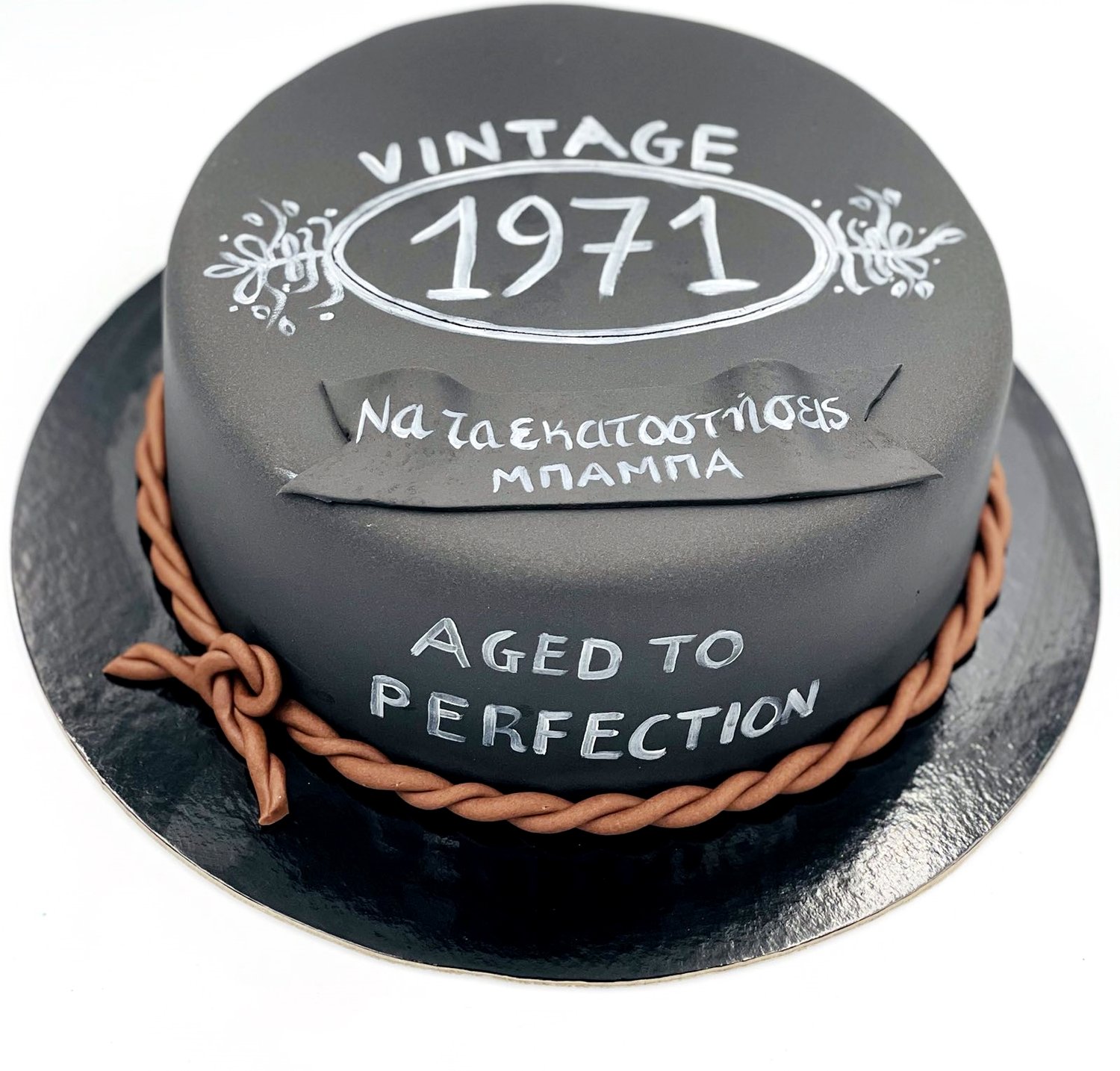 Ένα κομψό σχέδιο σε μαύρο φόντο με ρετρό χαρακτήρα, ιδανικό για άντρες που γιορτάζουν την ωριμότητά τους με χιούμορ και φινέτσα.